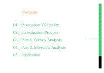 목차 Perception VS Reality Investigation Process Part 1. Survey Analysis Part 2. Interview Analysis Implication 본문 The second step is about investigation process. After establishing Hypothesis, we made questionnaire, surveyed and interviewed, analysed Here is the example of survey paper. Around 500 students joined it. Different majors, roughly balanced gender ratio, spread ages from freshmen to senior. We divided students into 3 groups. Liberal arts, Business & Economics, Science and Engineering. In korean 인문계 상경계 이공계 "Relatively" Liberal arts students prefer Professional jobs. And Business & Economics students are less likely to prefer public enterprise. To Science and Engineering students, we can't find something special. Almost same ratios. 키워드 작업환경, 조직론, 만족도, 직업, 영문 |