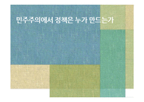 목차 01 민주주의란 무엇인가 02 문제제기 2.1 대의민주주의가 갖는 기본적 한계 2.2 우리나라 현 정부에서 나타나는 문제 03 현상분석 3.1 공식적 부문 3.2 비공식적 부문 04 결론 4.1 전자민주주의 4.2 시민들의 정치적 역량 강화 4.3 정책 매개기관의 성장 05 Q&A 본문 민주주의란 무엇인가 government of the people, by the people, for the people- 1863. 11 게티스버그 연설 민중이 권력을 가지고 스스로 권력을 행사하는 정치체제 국민의 기본적 인권 존중, 권력의 전제화를 억압할 수 있는 민주적인 정치제도의 확립이 요구 문제제기 01 대의민주주의가 갖는 기본적 한계 전문성의 부족 현대사회의 전문성과 복잡성 증대 제주도의 1문1답 도정질문제도 3) 다수결의 함정 다수에 의한 횡포 최선의 결과를 보장하지 못함 선거 외의 정치적 참여수단 부족 루소 曰 "사람들은 투표장에 들어갈 때는 주인이 되지만 투표 후에는 또 다시 노예가 된다" 키워드 문제점, 민주주의, 우리나라, 고찰, 전자민주주의 |