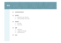 목차 01 민주주의란 무엇인가 02 문제제기 2.1 대의민주주의가 갖는 기본적 한계 2.2 우리나라 현 정부에서 나타나는 문제 03 현상분석 3.1 공식적 부문 3.2 비공식적 부문 04 결론 4.1 전자민주주의 4.2 시민들의 정치적 역량 강화 4.3 정책 매개기관의 성장 05 Q&A 본문 민주주의란 무엇인가 government of the people, by the people, for the people- 1863. 11 게티스버그 연설 민중이 권력을 가지고 스스로 권력을 행사하는 정치체제 국민의 기본적 인권 존중, 권력의 전제화를 억압할 수 있는 민주적인 정치제도의 확립이 요구 문제제기 01 대의민주주의가 갖는 기본적 한계 전문성의 부족 현대사회의 전문성과 복잡성 증대 제주도의 1문1답 도정질문제도 3) 다수결의 함정 다수에 의한 횡포 최선의 결과를 보장하지 못함 선거 외의 정치적 참여수단 부족 루소 曰 "사람들은 투표장에 들어갈 때는 주인이 되지만 투표 후에는 또 다시 노예가 된다" 키워드 문제점, 민주주의, 우리나라, 고찰, 전자민주주의 |