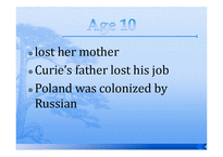 목차 She is Age 10 Age 17 In 1891 In 1903 In 1906 During world War I Difficulties & how to overcome 본문 She is One of the famous and honorable women throughout the history. Age 10 lost her mother Curie's father lost his job Poland was colonized by Russian Age 17 Women could not able to enter the university in Poland Finance problem In 1891 Went to university of Paris to study physics and math 키워드 생애, Marie, Curie, 마리퀴리, 연구 |