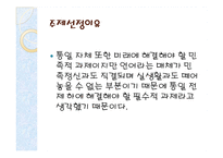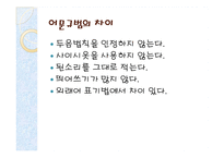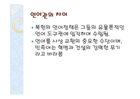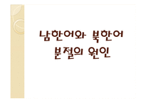 목차 1.주제선정이유 2.남한어와 북한어 분절의 원인 3.남한어와 북한어의 차이 4.남한어와 북한어의 장단점 5.통일 이후, 남북간의 통일 언어에 대한 견해 6.우리 조의 견해 본문 주제선정이유 통일 자체 또한 미래에 해결해야 할 민족적 과제이지만 언어라는 매체가 민족정신과도 직결되며 실생활과도 떼어 놓을 수 없는 부분이기 때문에 통일 전제 하에 해결해야 할 필수적 과제라고 생각했기 때문이다. 어문규범의 차이 두음법칙을 인정하지 않는다. 사이시옷을 사용하지 않는다. 된소리를 그대로 적는다. 띄어쓰기가 많지 않다. 외래어 표기법에서 차이 있다. 키워드 통일, 북한어, 차이, 남한어, 통일언어 |