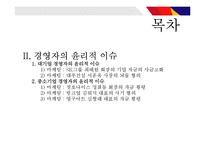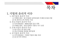 목차 I. 기업의 윤리적 이슈 1. 대기업의 윤리적 이슈 1) 마케팅 관리 : 동서식품과 남양유업의 카제인나트륨 공방 2) SK 하이닉스의 격려금 지급 2. 중소기업의 윤리적 이슈 1) 인적자원관리 : 태화산업의 임금 착복 2) 마케팅 관리 : 피자 업계의 식용유 치즈 논란 3. 금융기업의 윤리적 이슈 1) 골드만삭스의 내부 비판 2) 최고이자율을 위반한 대부업계 4. 공기업의 윤리적 이슈 1) 인적자원관리 : 지방공기업의 채용 비리 2) LH 공사의 양면성 II. 경영자의 윤리적 이슈 1. 대기업 경영자의 윤리적 이슈 1) 마케팅 : SK그룹 최태원 회장의 기업 자금의 사금고화 2) 마케팅 : 대우건설 서종욱 사장의 뇌물 혐의 2. 중소기업 경영자의 윤리적 이슈 1) 마케팅 : 청호나이스 정휘동 회장의 자금 횡령 2) 마케팅 : 링크업 김희석 대표의 사기 혐의 3) 마케팅 : 영구아트 심형래 대표의 자금 횡령 본문 남양유업과 동서식품의 카제인나트륨 공방 '카제인나트륨 대신 무지방 우유가 들어간 커피믹스' 인체에 유해하지 않다고 밝혀진 카제인나트륨에 대한 문제를 제기하며 노이즈 마케팅 '우유를 넣어도 향이 깊은 맥심 화이트 골드' 우유 사용을 강조하고 카제인 첨가물에 대한 아무런 언급을 하지 않은 것은 소비자를 기만한 것 소비자들의 진정한 Needs에 적합한 상품 개발 의지 식품 업체 소비자간 정기적인 간담회 개최 소비자 감시단 창설 : 비방 광고, 노이즈 마케팅 감시 식품 연구 기관 설립 : 식품 기업들과 관련 없이 독립적이고 중립적인 위치 키워드 기업윤리, 기업, 이슈, 윤리, 조사 |