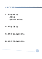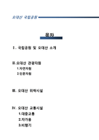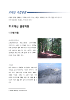목차 Ⅰ. 국립공원 및 오대산 소개 Ⅱ.오대산 관광자원 1.자연자원 2.인문자원 Ⅲ. 오대산 위락시설 Ⅳ. 오대산 교통시설 1.대중교통 2.자가용 3.비행기 Ⅴ. 오대산 숙박시설 1.전환시설 2.관광 목적 숙박시설 Ⅵ. 오대산 지원시설 Ⅶ. 오대산 정보시설과 서비스 Ⅷ. 오대산 판매시설과 서비스 본문 Ⅰ. 국립공원 및 오대산 소개 우리나라 국립공원 1967년 3월 '공원법'이 제정되어, 이 법을 근거로 하여 그 해에 지리산을 국립공원으로 지정한 것을 시초로, 1968년 경주 계룡산 한려해상을, 1970년 속리산 설악산 다도해해상 등을 국립공원으로 지정, 1995년 현재 20곳이 지정되었다. 1980년 공원법을 개정하여 자연공원법과 도시공원법으로 나누고, 자연공원을 국립공원 도립공원 군립공원으로 분류 지정하였다. 국립공원은 건설교통부장관이 관계 부처의 장과 협의, 관할 도지사의 의견을 들은 후 국토건설종합계획심의회의 심의를 거쳐 지정한다. 국립공원으로 지정되기 위해서는 첫째, 자연의 보존상태가 양호하고 훼손 또는 오염이 적으며, 야생동물이 서식하고 희귀식물이 식생하거나 지형의 경관이 수려해야 하고, 둘째, 문화재 또는 역사적 유물이 있으며, 자연경관과 조화되어 보존의 가치가 있어야 하며, 셋째, 각종 산업개발에 의하여 지형의 경관이 파괴되지 아니하였거나 파괴될 우려가 없는 곳이어야 하며, 넷째, 국유지 또는 공유지의 면적보다 사유지의 면적이 비교적 적은 곳이어야 하는 등 조건을 갖추어야 한다. 키워드 오대산, 관광자원론, 국립, 자원론, 공원 |