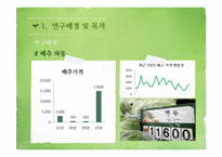목차 1. 연구배경 및 목적 2. 유통구조 3. 가설모형, 함수식 4. 코딩 및 인터뷰 5. 전략 및 한계 본문 1. 연구배경 및 목적 _ 연구목적 배추의 유통단계를 줄이는 방안으로 전자상거래 제안 및 활성화 방안 제시 2. 배추의 유통과정에서 불필요한 단계를 줄여생산자에게는 합당한 소득을 보장하고 소비자에게는 합리적인 가격으로 배추를 소비할 수 있기 위한 유통 방안 제시. 2. 유통구조 _ 농산물 유통구조의 특징 1. 농산물의 공급은 계절적 특성 2. 부패하기 쉬운 성질 & 짧은 유통 기한 3. 생산자가 전국 각지로 흩어져서 생산 농산물 공급을 한곳에 집중시키기 어려움 4. 공급에 대한 탄력성이 매우 낮음 키워드 개선방안, 유통관리, 유통구조, 전자상거래, 활성화 |