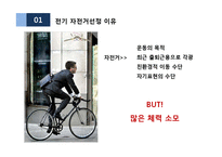목차 01. 전기자전거 선정 이유 02. 전기자전거의 성능 03. 전기자전거 시장의 국내 현황 04. 전기자전거의 새로운 사업전략 05. 결론 본문 BUT! 일부 소비자에게 스쿠터는, Overserved Market 스쿠터>> 자동차 대비 짧은 주행 거리/저렴한 가격 지속적으로 기술 및 외형 발전 자기 표현의 수단 전기 자전거선정 이유 자전거>> 운동의 목적 최근 출퇴근용으로 각광 친환경적 이동 수단 자기표현의 수단 BUT! 많은 체력 소모 키워드 전기자전거, 전략경영, 혁신, 자전거 |