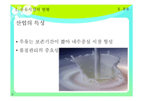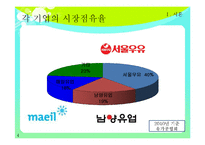 목차 Ⅰ. 서론 Ⅱ. 본론 1. 우유시장 현황 2. 기업별 분석 (1) 서울우유 (2) 남양유업 (3) 매일유업 3. 기업별 안전관리 시스템 4. 우유시장의 산업구조 분석 5. 중국의 우유시장 현황 6. 기업별 취업조건 Ⅲ. 결론 본문 산업의 특성 우유는 보존기간이 짧아 내수중심 시장 형성 품질관리의 중요성 산업의 변화 및 위기 성숙기 시장 성장이 정체되어 있는 편. 국제곡물가격상승 →원유생산량 감소(2,139천 톤) 경기위축+유제품가격 인상→소비량 감소 (3,035천 톤) 전체 낙농소득 : 3천 6백만 원 (전년대비 33% 감소) 전체 낙농가 집계수 : 7000호 (2008년, 2007년 대비 8.6%감소) 소규모 영세 낙농가 위주로 폐업. 도시화, 고령화로 인해 폐업 가속화될 것. 사육두수감소-두당 산유 능력 향상 (유전능력개발, 경영능력향상과 생산요소투입확대, 사양기술개발 등) 키워드 우유, 기업분석, 남양유업, 매일유업, 서울우유 |