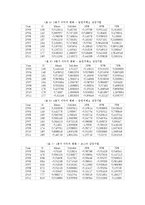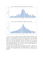 목차 Ⅰ. 이익 감소와 손실을 피하기 위한 이익 조정 1. 이익 감소를 피하기 위한 이익 조정 2. 손실을 피하기 위한 이익 조정 Ⅱ. 손실 회피를 위한 이익 조정의 증거 1. 사전적 이익 조정의 증거 2. 사후적 이익 조정의 증거 Ⅲ. 결론 본문 이번 분석에서 증권거래소 상장기업의 경우 앞 분석처럼 KRX 포트폴리오를 사용할 경우 표본 개수가 지나치게 작아지는 문제가 발생하므로 금융업을 제외한 전체 증권거래소의 자료를 이용했다. 위쪽의 히스토그램을 보면 논문의 결과와 같이 증권거래소 상장기업과 코스닥 상장기업 모두 히스토그램의 모양에서 유의미한 차이를 찾아볼 수 없었으며, 표준오차를 계산한 결과 또한 마찬가지였다. 증권거래소의 경우 0 바로 왼편의 표준오차는 지속적으로 증가했지만 0 바로 오른편의 표준오차는 일정한 패턴이 도출되지 않았고, 코스닥 상장기업의 경우 0 좌우측 모두 일정한 패턴을 보이지 않았다. 따라서 위 분석을 통해 과거 이익 지속연수와 이익 조정 간에 관계가 없다는 귀무가설을 기각할 수 없다. 키워드 상장기업, 특수경영, 이익, Burgstahler, Dichev |