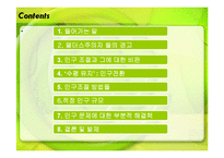 목차 1. 들어가는 말 2. 맬더스주의자 들의 경고 3. 인구 조절과 그에 대한 비판 4. '수평 유지' : 인구전환 5. 인구조절 방법들 6.적정 인구 규모 7. 인구 문제에 대한 부분적 해결책 8. 결론 및 발제 본문 5. 인구조절의 방법들 <유인책과 억제책> 악명높은 유인책 인도의 적극적 인고조절 정책 유인책과 억제책 모두 자율성이라는 근본적인 원칙을 위반할 가능성 내제 <피임명령 vs 가족규모의 제한(1)> 피임명령 인도의 정관수술 피임명령은 자녀출산의 선택을 하게 되는 결정구조를 변화시킬수 있지만 여전히 가족의 수에 대한 선택은 개인의 선호 하고 싶은 말 인구문제에 관하여 조사 했습니다. 목차 및 미리보기 참조 해주세요.^^ 키워드 인구문제, 인구문제멜더스주의자, 인구조절, 인구문제비판, 인구문제수평유지, 인구문제인구전환, 인구문제인구조절방법, 적정인구규모, 인구문제해결책, 인구문제피임 |